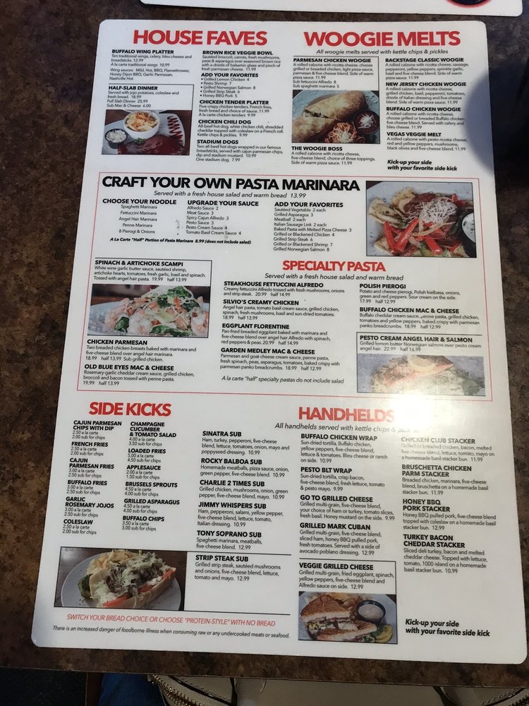 Woogie melt with a 6 cheese blend. Served with pickles, chips and sauce.